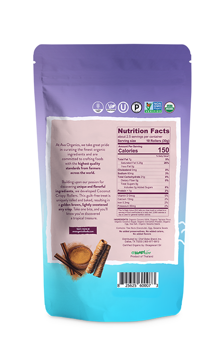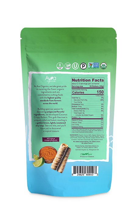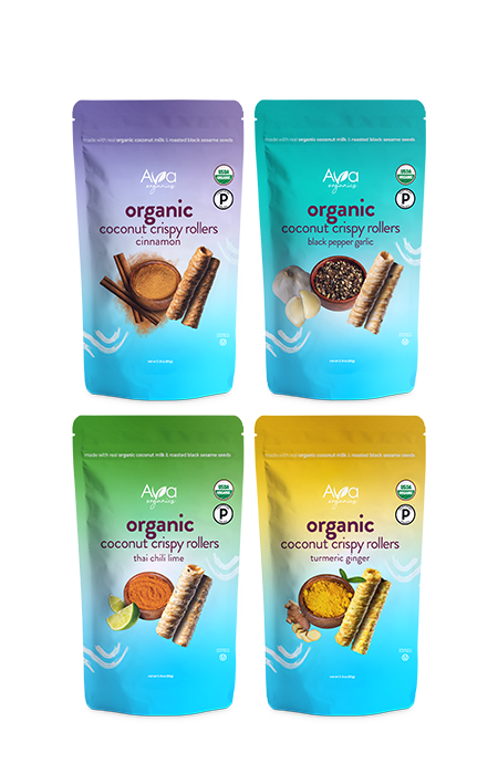 Experience more of our unique flavor combinations with a Coconut Crispy Roller Variety Pack. Explore the flavors of zesty garlic and pepper, warm cinnamon, tangy Thai chili, and subtle hints of turmeric and ginger. Try all flavors and discover your new favorite snack!